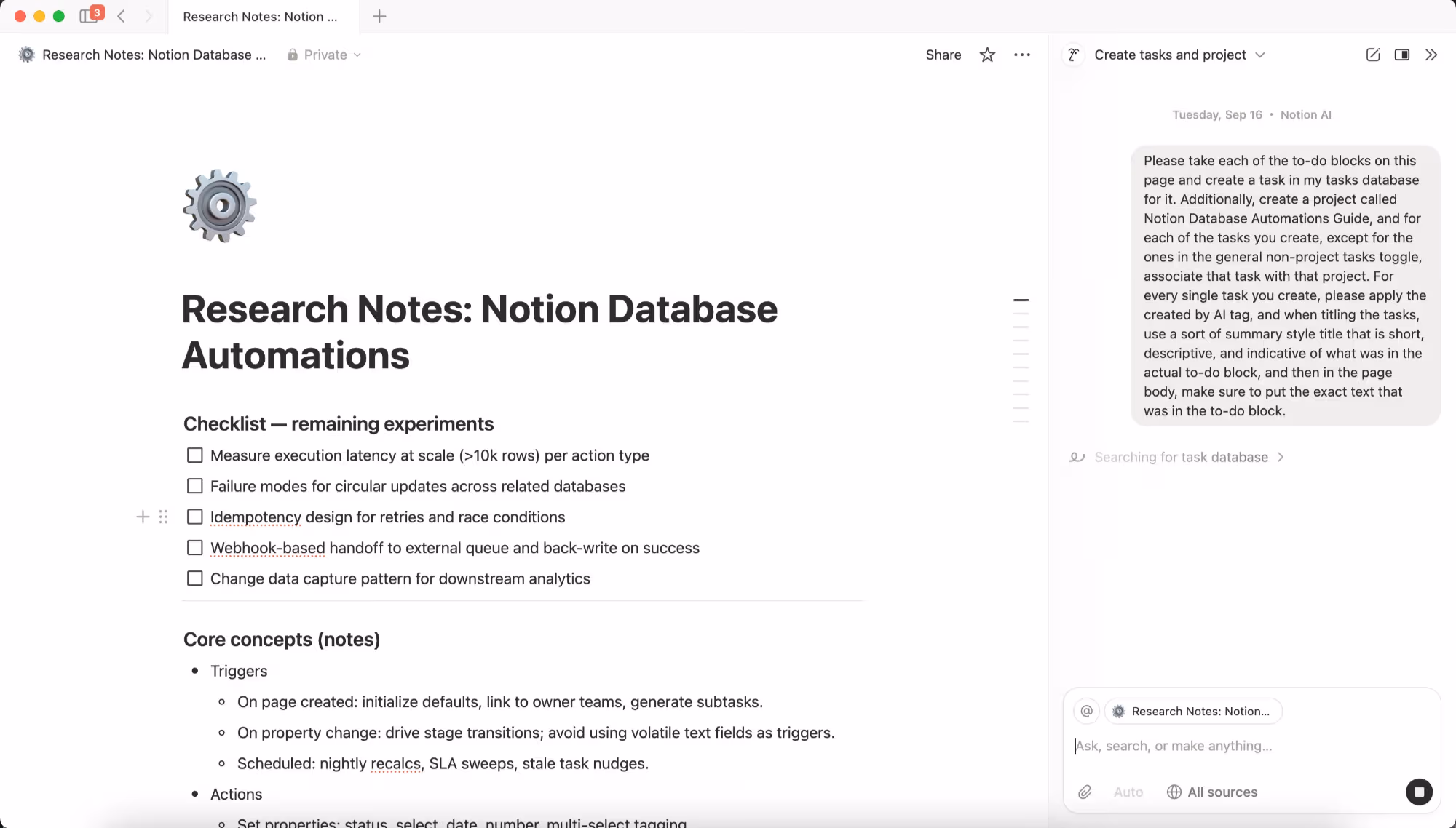 ミーティングのメモブロックを使用して新しいミーティングのメモページを作成し、プロジェクトチャンネルで進行中の最新プロジェクトと未解決の議論に基づいて、短い議題を追加します。